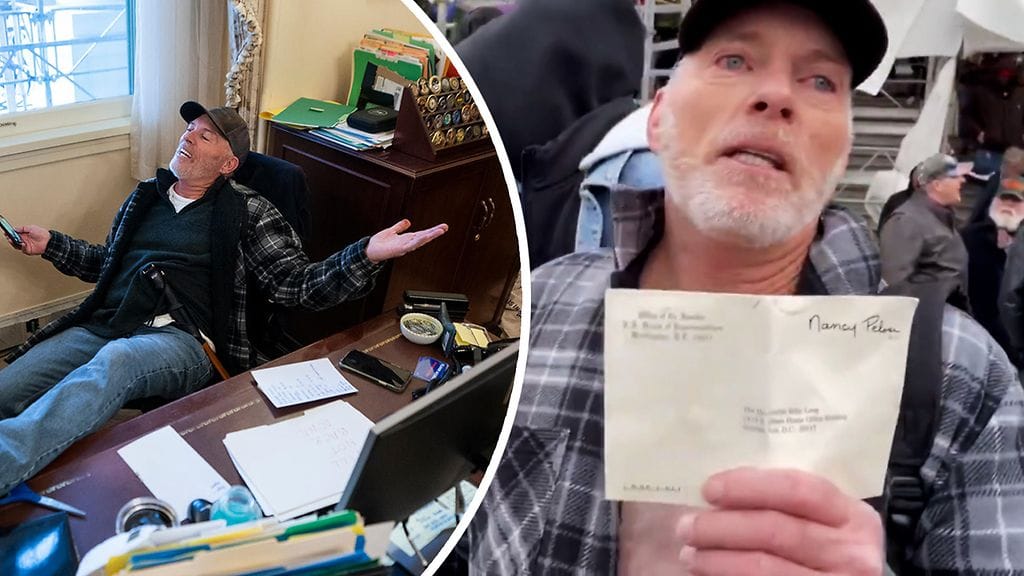 Richard Barnett, 60, oli yksi, joka tunkeutui kongressiin keskiviikkona. Miehestä levisi sosiaalisessa mediassa kuva, kun hän istui edustajainhuoneen puheenjohtaja Nancy Pelosin työhuoneen tuolissa ja piti jalkojaan työpöydällä.