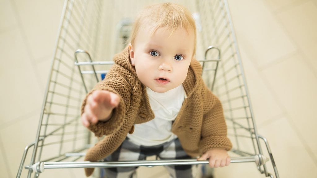 Hän huomauttaa, että oli jonottanut jo 15 minuuttia ja ehtinyt viihdyttää lapsiaan kirjoilla, välipaloilla ja osoittelemalla muiden asiakkaiden tuotteita.