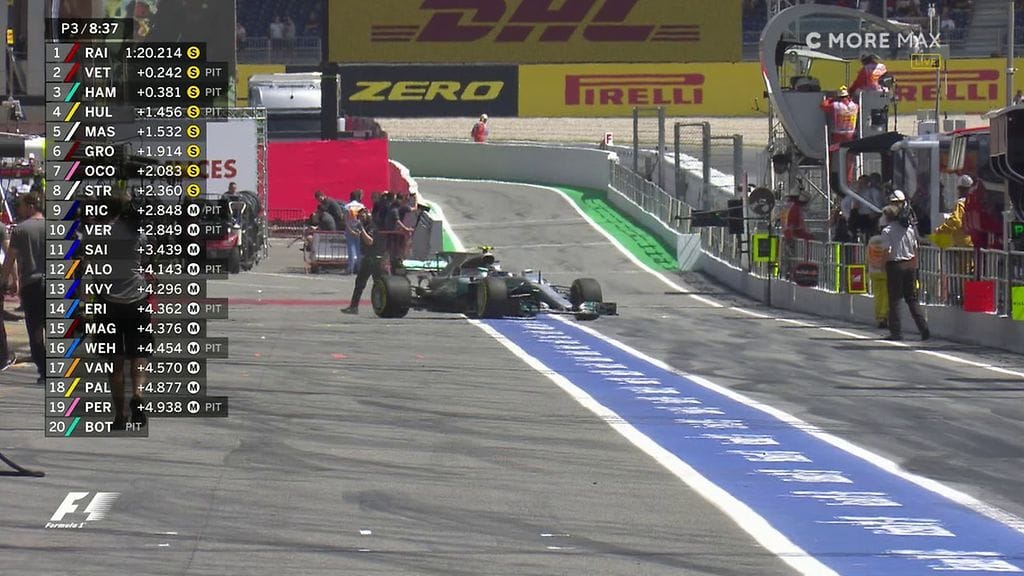Bottaksen auton voimayksikössä havaittiin vikaa myöhään perjantaina. Talli korjasi suomalaisen autoa pitkin perjantai-iltaa ja lauantaita. Vasta kun lauantain harjoituksia oli jäljellä alle kymmenen minuuttia, pääsi Bottas korjatulla autollaan radalle.