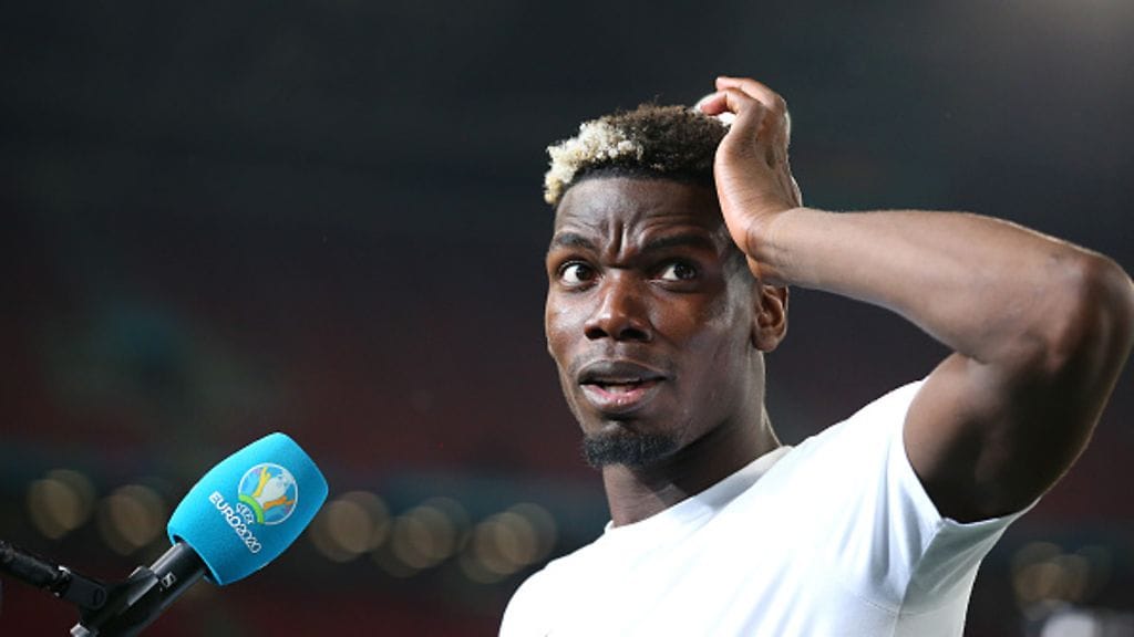Pogban mustavalkoinen hiustyyli yhdistettiin mahdolliseen paluuseen Juventukseen. Häneltä udeltiin asiasta lehdistötilaisuudessa.