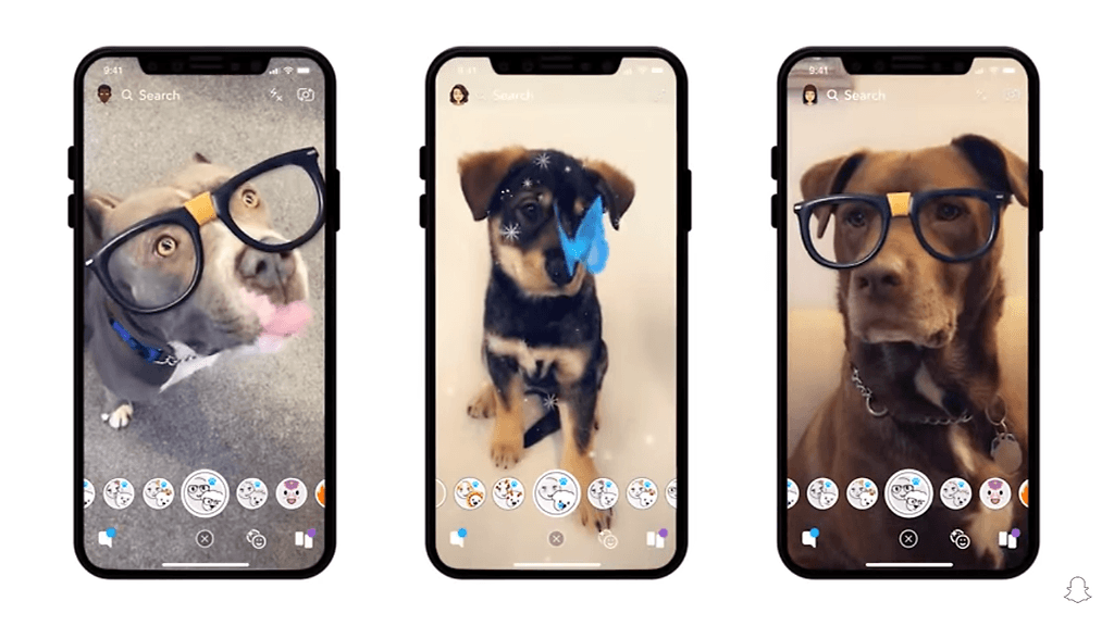Virallisia, Snapin luomia koirille suunnattuja linssejä on toistaiseksi saatavilla vain muutamia, mutta valikoiman voitaneen odottaa laajenevan jo lähitulevaisuudessa. Oman lemmikkinsä kuvaa voi jo nyt kaunistaa vaikkapa silmälaseilla tai poronsarvilla.