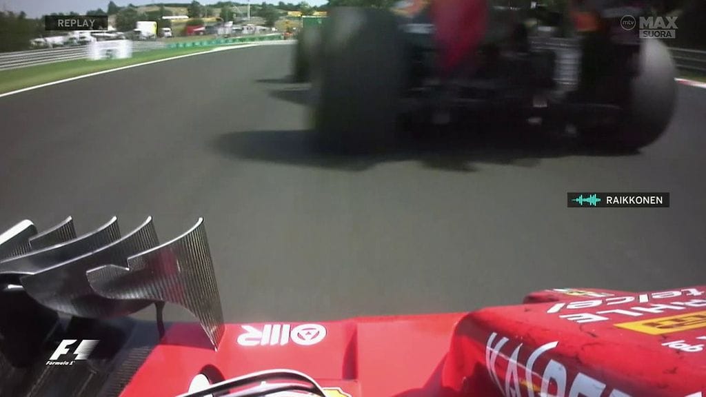 Tilanne radalla päättyi siihen, että Räikkönen menetti etusiivestään päätypalan eikä päässyt Verstappenista ohi. Suomalaiskuski ajoi Ferrarillaan lopulta kuudenneksi.