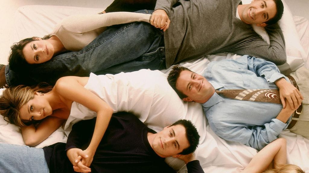 Viisikko ei päässyt edes sohvalle istumaan, kun hyväntuulinen sekoilu oli jo vauhdissa. Istumäjärjestys massiivisella sohvalla oli tähdille ilmeisen epäselvä. Matt LeBlanc nappasi Jennifer Anistonia vyötäisiltä kiinni ja pelasi itsensä Anistonin ja Courteney Coxin väliin. Anistonin horjui naurunsekaisesti ja tyytyi LeBlancin hänelle antamalle paikalle.
