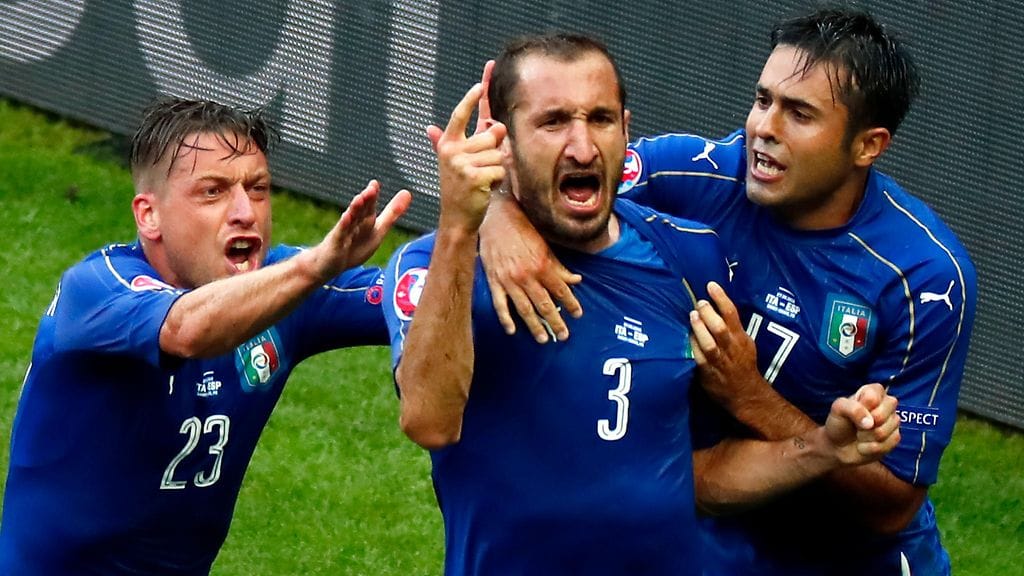 Italia siirtyi ottelussa johtoon 33. minuutilla. Eder tykitti vapaapotkun, jonka Espanjan maalivahti David de Gea torjui eteensä. Espanjan puolustus oli paluupallossa auttamattoman hidas, joten puolustaja Giorgio Chiellini ehti ohjaamaan pelivälineen verkkoon.