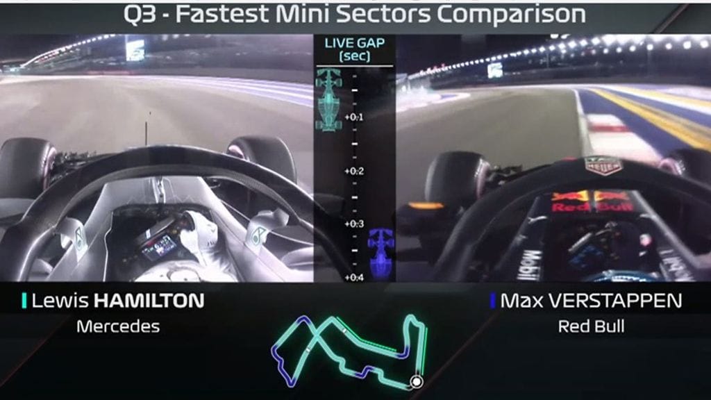 Kun aika-ajokierrokset laitetaan rinnakkain, näkyy hyvin, kuinka Hamilton onnistuu lyömään häikäisevällä kierroksellaan Red Bullin pitkälti Mercedeksen moottoritehojen ansiosta.
