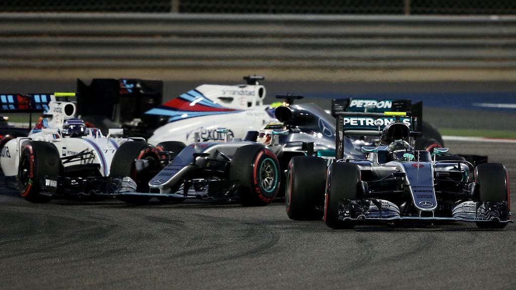 Hamilton ajoi Bahrainissa paalupaikalle huikealla aika-ajokierroksella, mutta menetti johtoasemansa startissa Rosbergille. Ykkösmutkassa Williamsin Valtteri Bottas puski kylkeen rangaistuksen arvoisesti ja pudotti Hamiltonin kauas kärjestä.