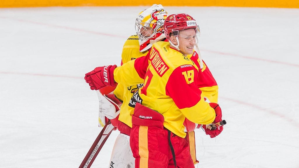 Latvialaisvahti Janis Kalnins torjui Jokereiden maalilla kauden ensimmäisen nollapelinsä. Kalnins venyi kiekon tielle 20 kertaa.