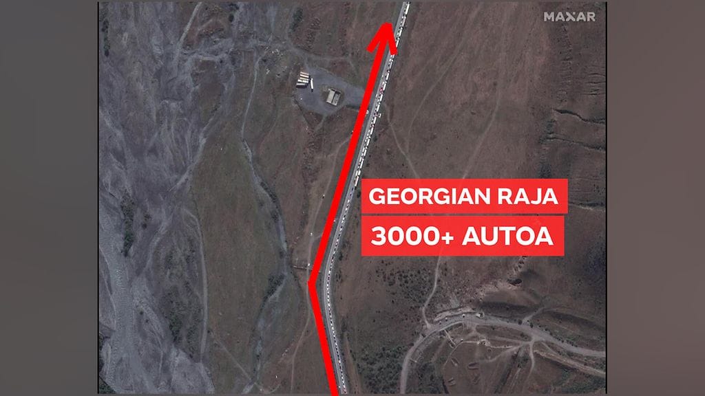 Satelliittikuvissa näkyi viime sunnuntaina pitkiä jonoja Venäjän ja Georgian rajalla, kun miehet yksin tai perheineen pakenivat naapurimaihin välttääkseen kutsun taisteluun Ukrainaan. Sunnuntaina arvioitu odotusaika Georgiaan pääsemiseksi oli 48 tuntia, kun yli 3 000 ajoneuvoa jonotti rajan ylittämistä.