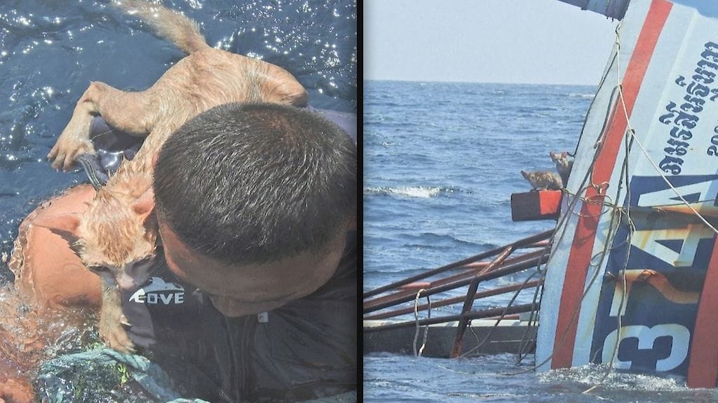 Thaimaan laivaston merimies hyppäsi pelkäämättä veteen pelastamaan kissoja, jotka olivat jääneet jumiin uppoavaan veneeseen Andamaanienmerellä viime tiistaina.