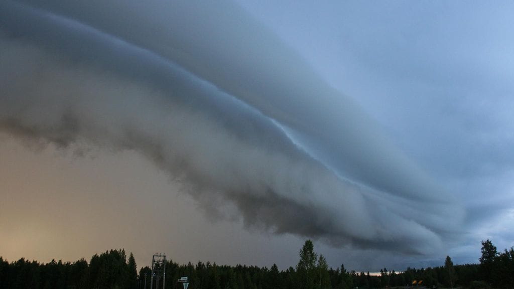 Näyttävä vyörypilvi hämmästytti viikonloppuna Pirkkalassa. Vyörypilvi on kuuro- ja ukkospilven yhteydessä oleva ilmiö, komea muurimainen muodostelma.