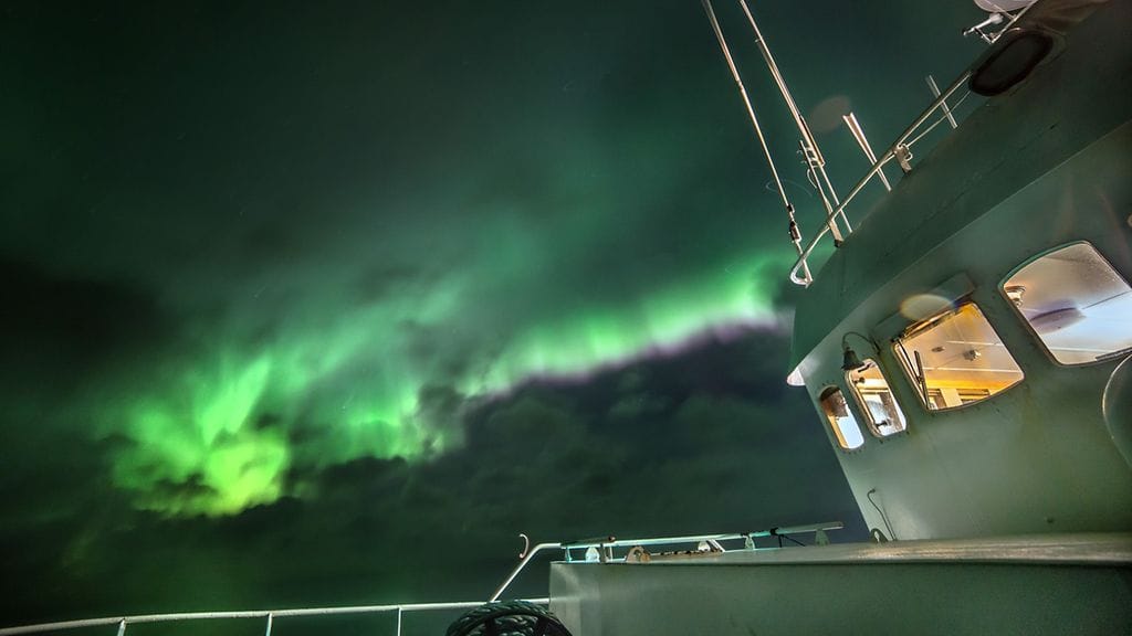 36-vuotias Njals oli kylmänä lokakuisena iltana 15-henkisen miehistönsä kanssa kalastamassa turskaa, kun näki taivaalla vihreänä loimuavat revontulet.