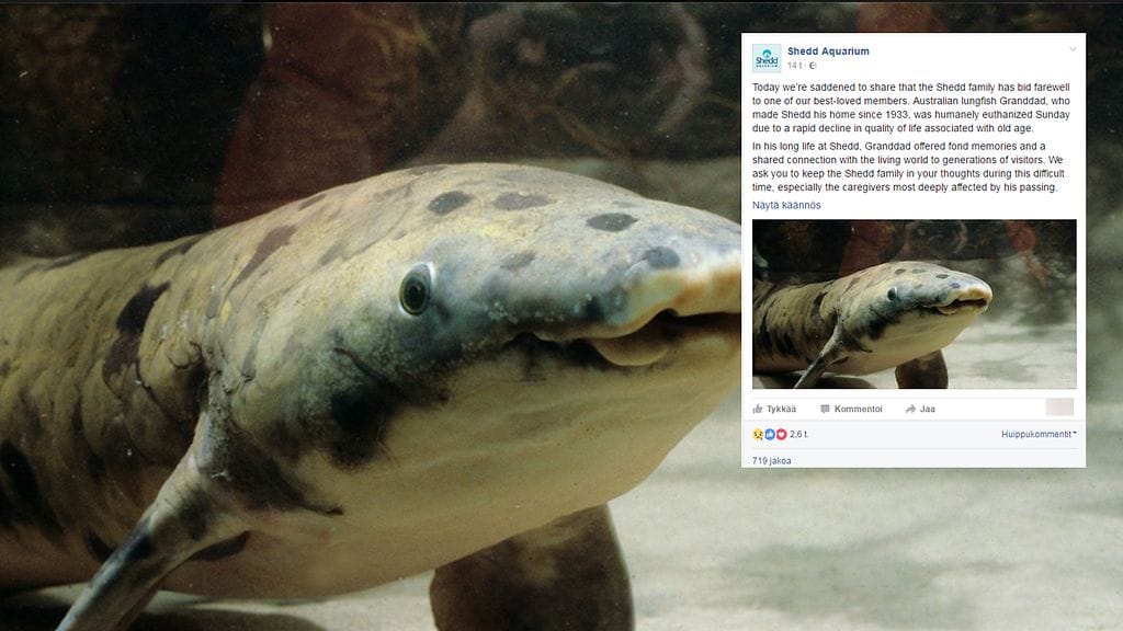 Maailman vanhin akvaario-olosuhteissa elänyt kala on kuollut Shedd-akvaariossa Chicagossa Yhdysvalloissa. Asiasta kertoo uutistoimisto Reuters.