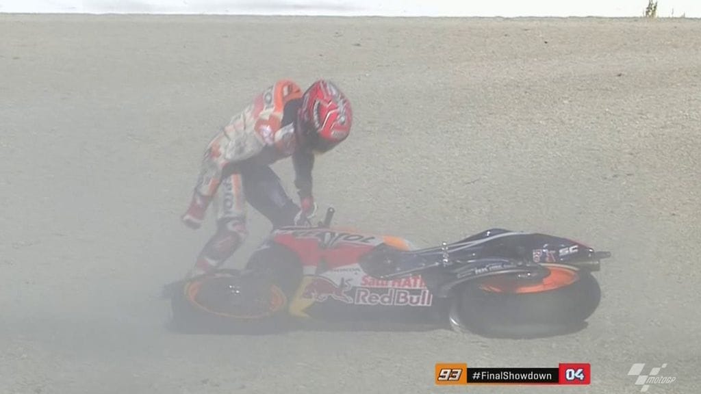 MotoGP:n MM-sarjaa johtavan Marc Marquezin aika-ajoon mahtui tapahtumia.