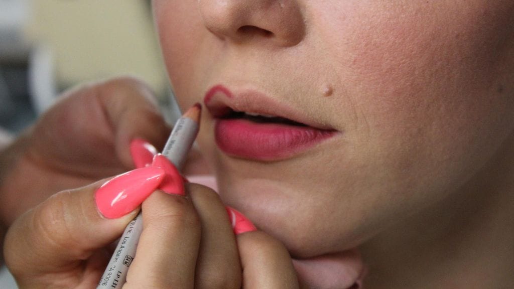 Kaksivärinen meikki saa aikaan sen, että huulet näyttävät näin muhkeammilta.