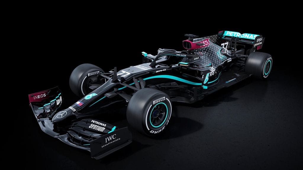 Kaudella 2020 Mercedeksen W11-auto on mustaväritteinen.