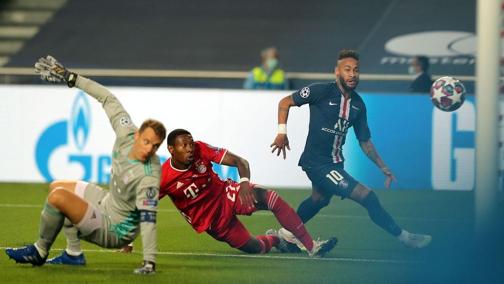 PSG:n Neymar ja Bayern Münchenin Robert Lewandowski olivat vuoron perään lähellä maalintekoa jalkapallon Mestarien liigan loppuottelun avausjaksolla.