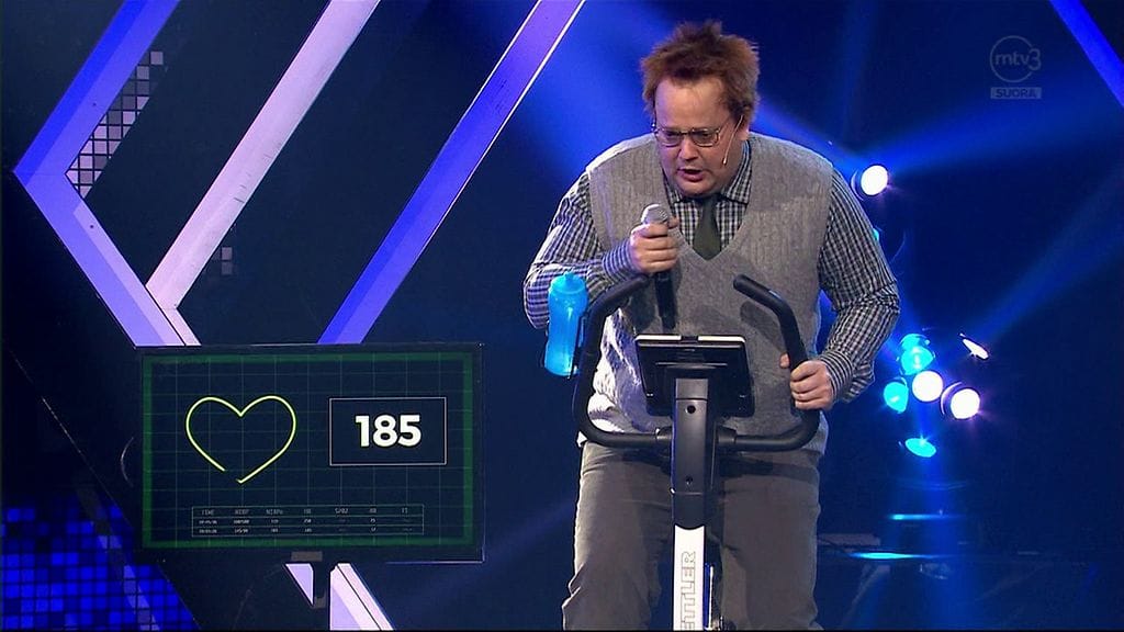 Näyttelijä Kalle Lambergin Kingi-hahmo Ensio Tapani Sorsa esitteli urheilullista elämäntapaansa Kingin ensimmäisessä suorassa lähetyksessä.