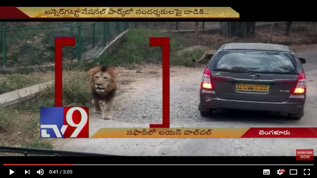 Vahingoilta onneksi vältyttiin, mutta intialaisen televisiokanavan video palauttaa kirkkaasti mieleen, miksi leijonia kutsutaan villieläimiksi.