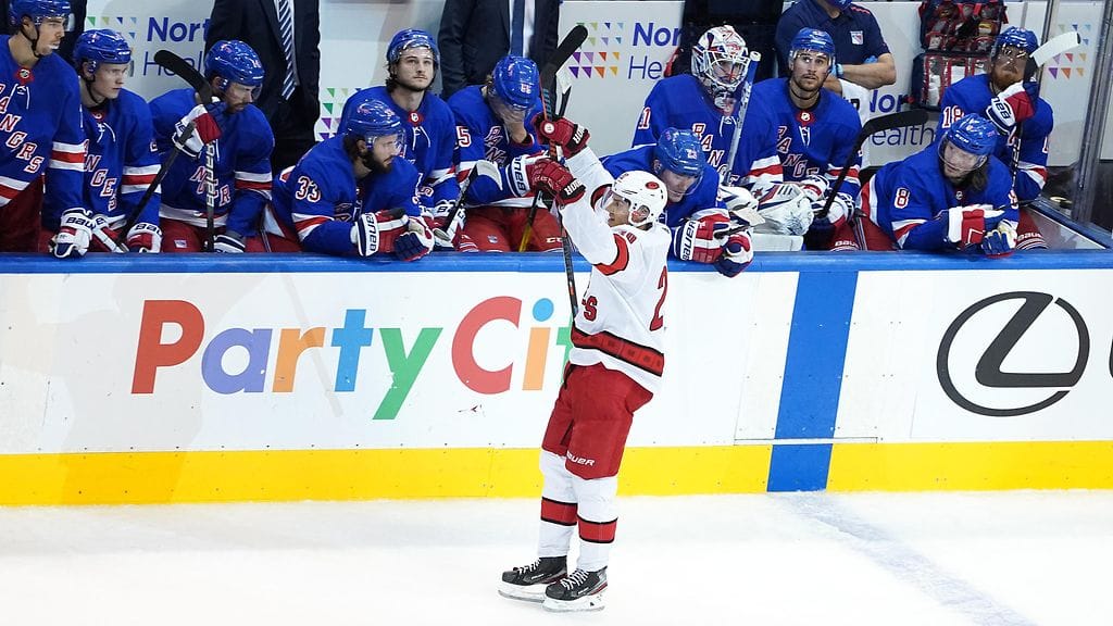 Carolina Hurricanes nujersi New York Rangersin vakuuttavasti otteluvoitoin 3–0 NHL:n pudotuspelien karsintakierroksella. Ottelupari herätti paljon tunteita molempien seurojen faneissa. Osa Rangersin pelaajista sai kovaa palautetta Hurricanesin faneilta pitkin sarjaa.