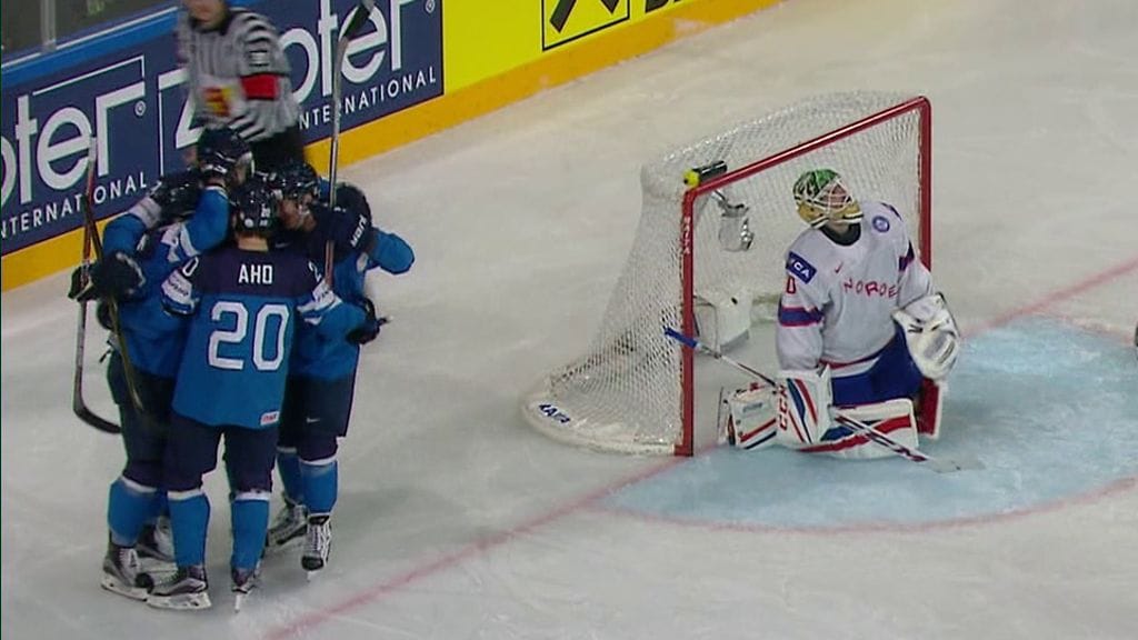 Juuso Hietanen tasoitti tilanteeksi 1-1 Suomen ja Norjan välisessä jääkiekon MM-kisojen ottelussa.