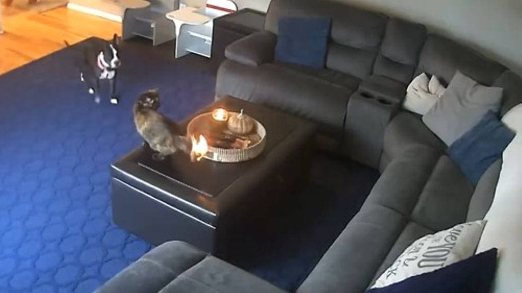 Kamera paljasti kynttilöiden polttamisen riskit lemmikkikodissa.