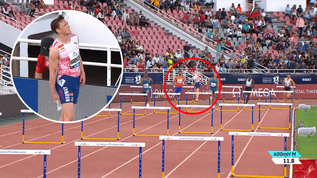 400 metrin aitojen maailmanennätysmies Karsten Warholmin kausi käynnistyi painajaismaisella tavalla Rabatin Timanttiliigan osakilpailussa sunnuntaina.