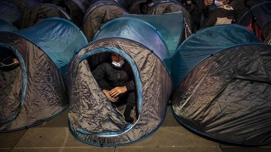 Vapaaehtoiset olivat auttaneet pystyttämään noin 500 sinistä telttaa keskustassa sijaitsevalle Place de la Republique -aukiolle myöhään maanantai-iltana. Teltat täyttyivät nopeasti, valtaosa paikalle tulleista siirtolaisista oli Afganistanista.