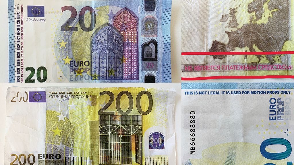 Poliisin esittelemässä 20 euron seteliä jäljittelevässä paperissa on englanniksi teksti, jossa sanotaan, ettei kyseessä ole laillinen maksuväline. "This is not legal, it is to be used for motion props". "Tämä ei ole laillinen, sitä on tarkoitus käyttää elokuvarekvisiittana". Lisäksi setelissä olevan Euroopan lipun alla on teksti "Elokuvarahaa".