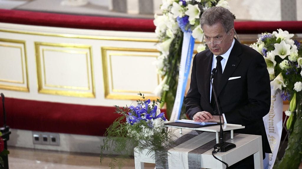 Prseidentti Sauli Niinistö on pitänyt muistopuheensa edeltäjänsä, presidentti Mauno Koiviston siunaustilaisuudessa Helsingin Tuomiokirkossa.