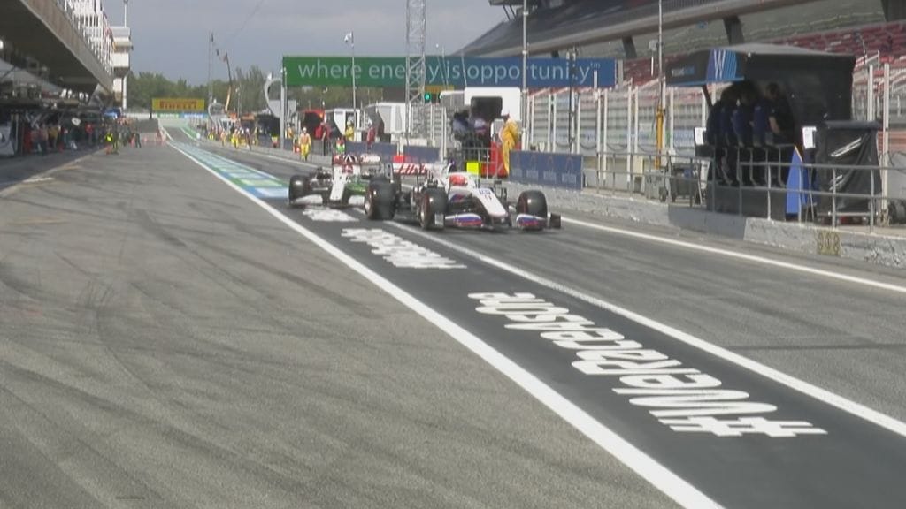 Kimi Räikkösellä ja Nikita Mazepinilla oli lähellä rytistä Espanjan GP:n harjoitusten lomassa.