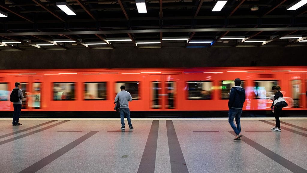 Joukko matkustajia odotti vian korjaamista metrojunan kyydissä asemien välillä.