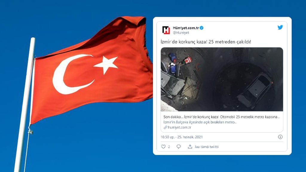 Muun muassa Hürriyet-lehti uutisoi, että auto oli pudonnut 25 metriä metrotyömaalla.