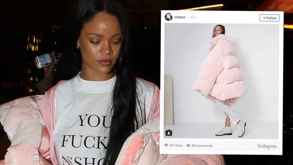 Rihanna pukeutui 23-vuotiaan Ella Bouchtin suunnittelemaan takkiin.