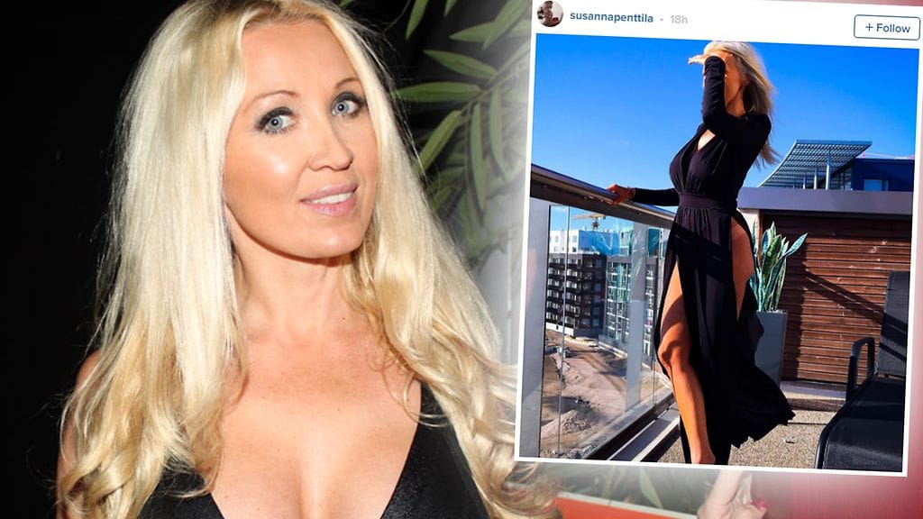 Susanna Penttilä, 43, julkaisi Instagram-tilillään kuvan, jossa hän poseeraa kerrostalon katolla.
