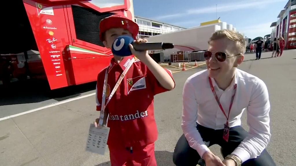Itkuinen Thomas poimittiin katsomosta tv-kuviin, kun Räikkönen joutui keskeyttämään kisan heti startissa kolaroituaan Red Bullin Max Verstappenin kanssa. Thomas sai kuitenkin parhaan mahdollisen lohdutuspalkinnon, kun hän pääsi suomalaiskuskin vieraaksi Ferrarin pilttuuseen.