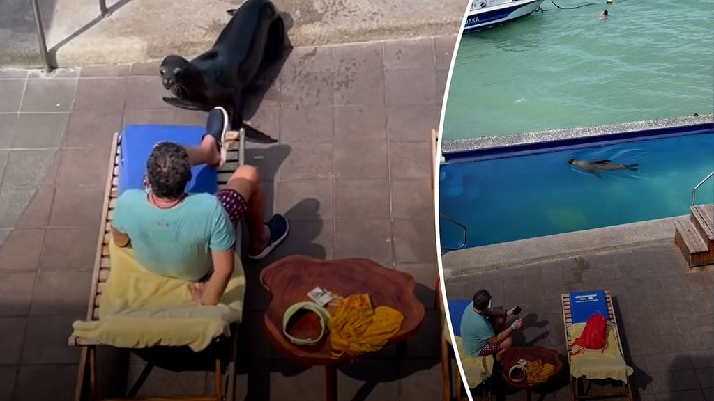 Paikallinen merileijona kuuluu hotellin vakiovieraisiin Galápagossaarilla.
