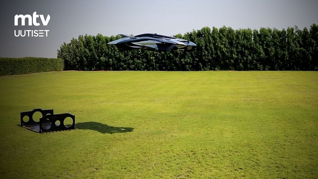 Videolta on nähtävissä, kuinka auto nousee ilmaan dronen omaisesti kohtisuoraan ylöspäin. Dubaissa testattu laite on pieni prototyyppi siitä, mitä evTOL-voisi tulevaisuudessa mahdollisesti olla.