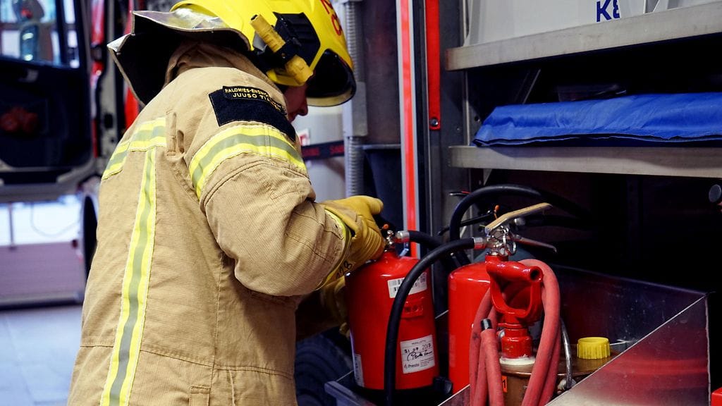 Pelastuslaitos odottelee sähköyhtiötä paikan päälle.