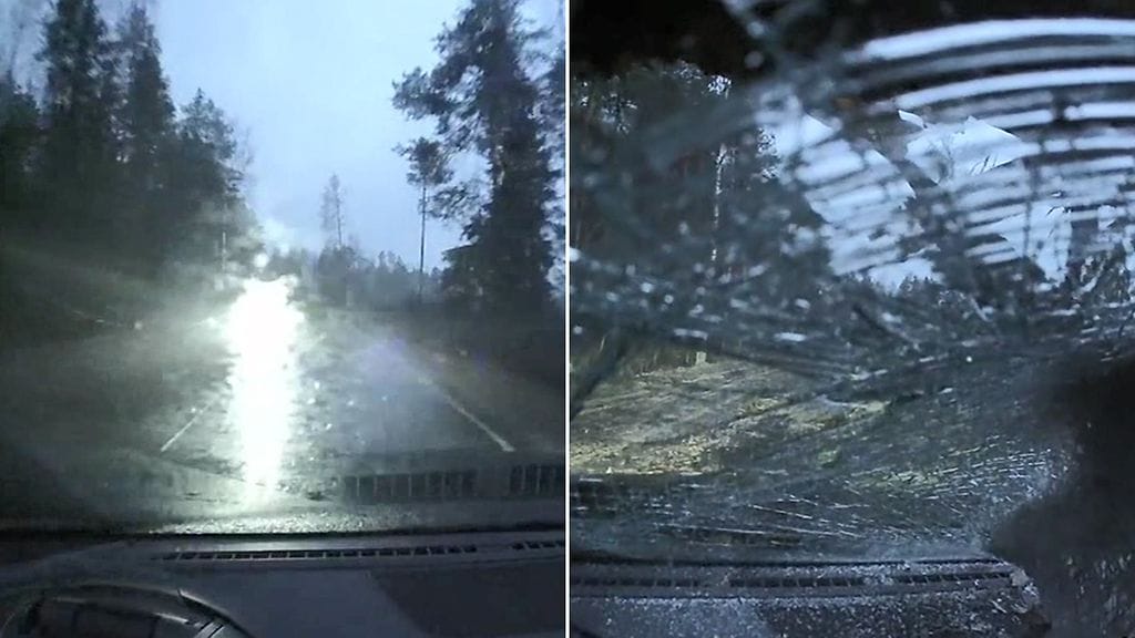 Moskovassa huhtikuun lopulla sattunut onnettomuus tallentui auton kojelautakameraan. Märällä tiellä ajanut kuljettaja häikäistyi asfaltista heijastuvista ajovaloista eikä havainnut ajoissa tielle kaatunutta puuta.