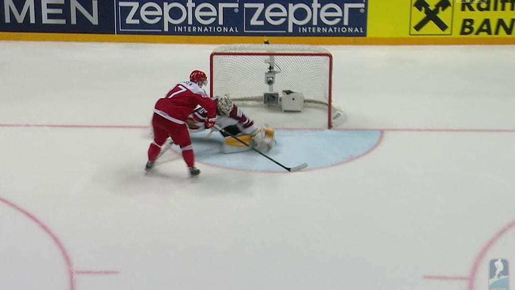 Tanska avasi Nicklas Jensenin maalilla, mutta Latvia tuli kahdella ylivoimamaalilla tasoihin ja ohi. Hieman ennen toisen erän puoliväliä Morten Poulsen teki Tanskalle 2-2-tasoituksen.
