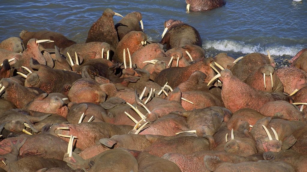 David Attenborough'n juontamassa luonto-ohjelmassa kerrotaan, että syynä on ilmastonmuutos ja jäiden vähentyminen, mikä saa yhä useammat mursut hakeutumaan korkeille kielekkeille, mistä ne kuitenkin osittain huonon näkönsä vuoksi putoavat pyrkiessään takaisin veteen.
