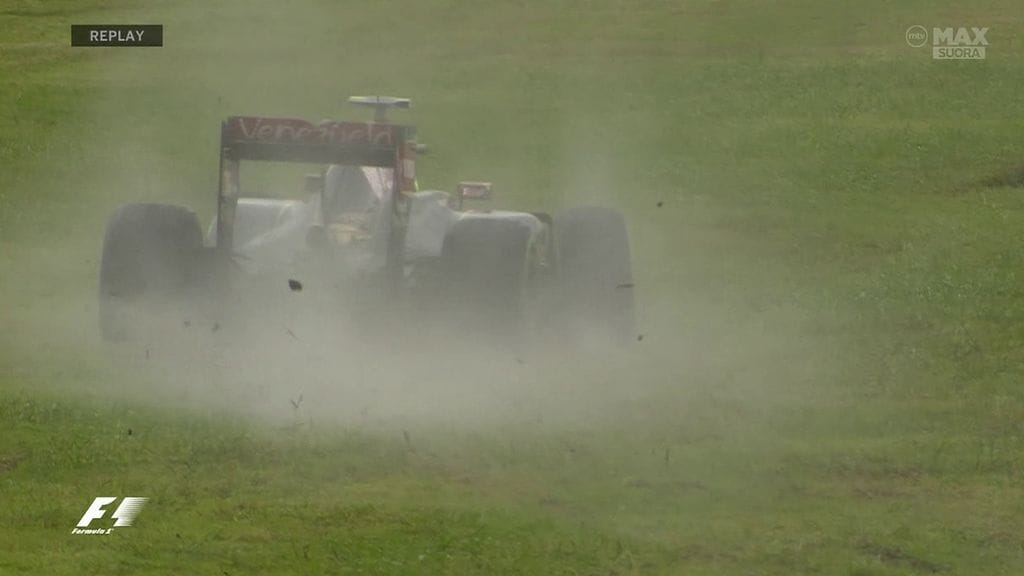 Maldonadon lisäksi myös muun muassa Ferrarin Sebastian Vettel luisteli radan ulkopuolelle.