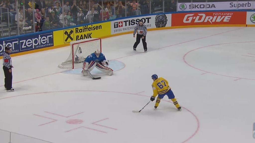 Jokereitakin seuratasolla edustanut Linus Omark joutui rikotuksi läpiajossaan, jonka seurauksena Ruotsi sai rangaistuslaukauksen. Ottelu oli tuossa vaiheessa ruotsalaisille jo lukemissa 6-1.