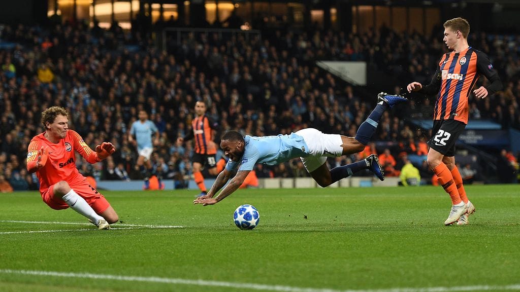 Cityn Gabriel Jesus pääsi iskemään 2-0-maalin pilkulta 24. minuutilla, kun tuomari näki Shakhtarin Mikola Matvijenkon rikkoneen Raheem Sterlingiä.