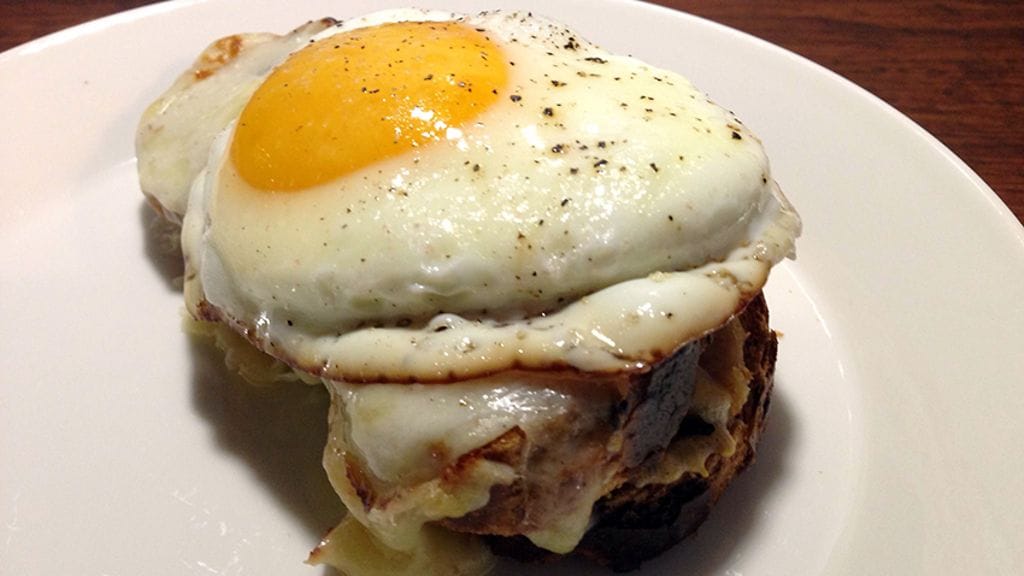 VINKKI 2! Kun isket Croque Monsieurin päälle paistetun kananmunan, se on Croque Madam (kts. kuva alla).