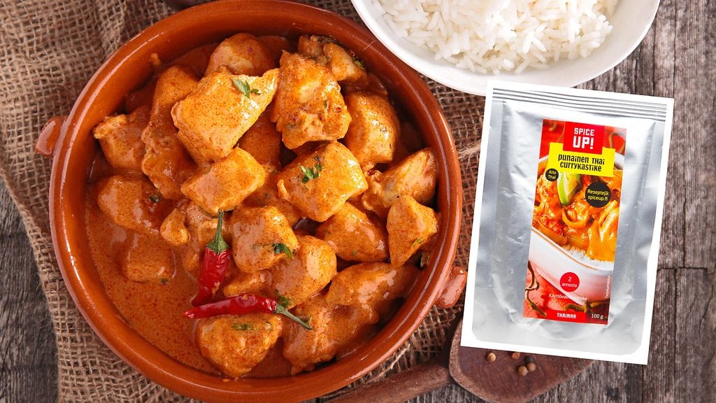 Spice Up! Punainen thai currykastike -tuotteessa on parasta ennen -päivällä 4.4.2022 tapahtunut tarroitusvirhe, tuotetta valmistavasta Finefoods-yrityksestä tiedotetaan.