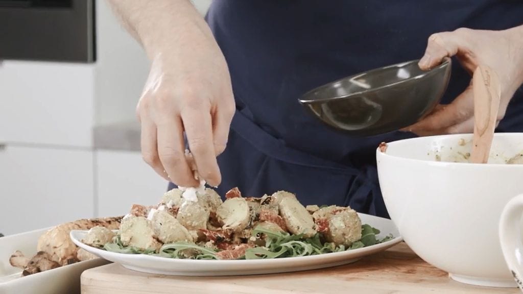 Katso yllä olevalta videolta nopean ja maukkaan perunasalaatin ohje ja vinkki helposta kastikkeesta ruokaiselle lisukesalaatille.
