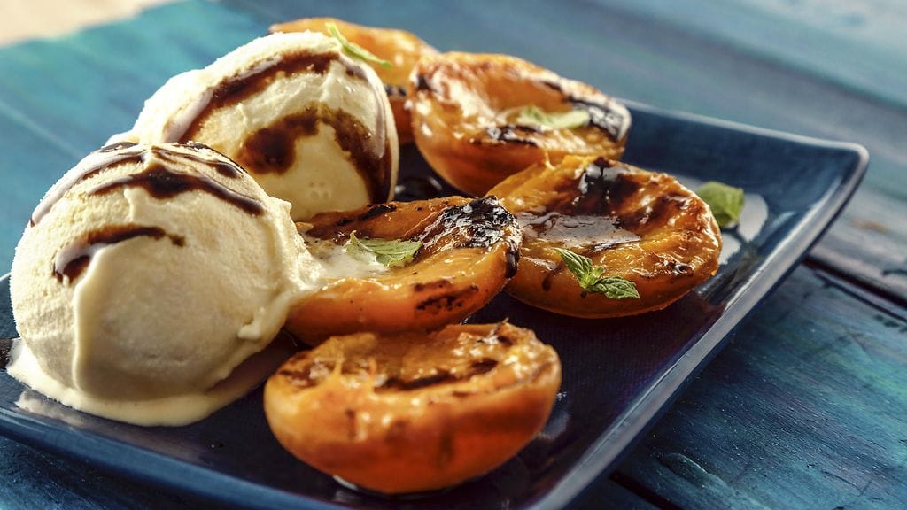 Kesän herkullisin jälkiruoka syntyy grillatuista hedelmistä ja viilentävästä jäätelöstä.