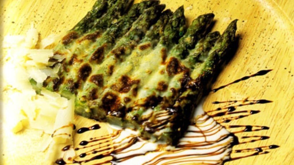 Paista uunissa 200-asteessa 15 minuuttia. Pirskottele lopuksi balsamiviinietikkaa parsojen päälle.
