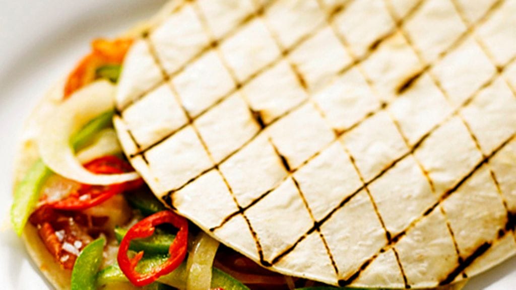 3. Nosta grilliritilä ylimmäksi hiilien hehkusta. Grillaa täytettyjä tortilloja 2-3 minuuttia kummaltakin puolelta. Leikkaa tortillat kolmioiksi tarjoiltaessa.